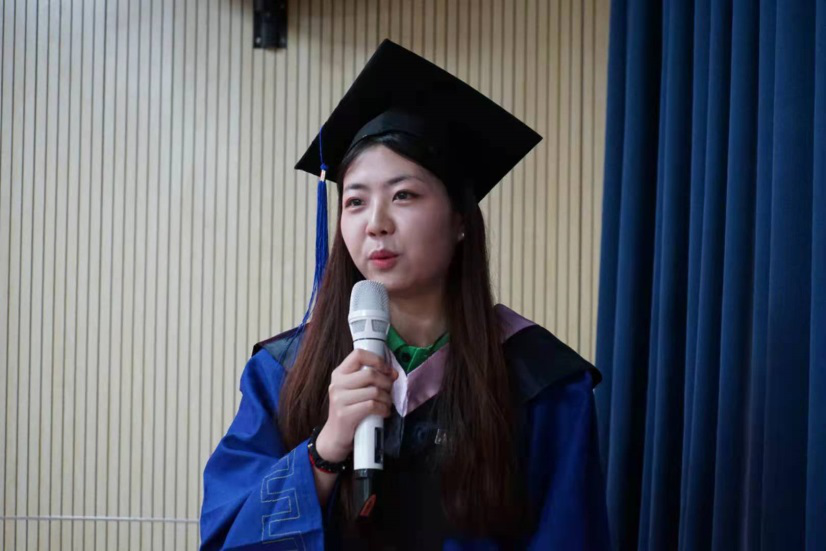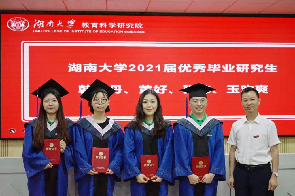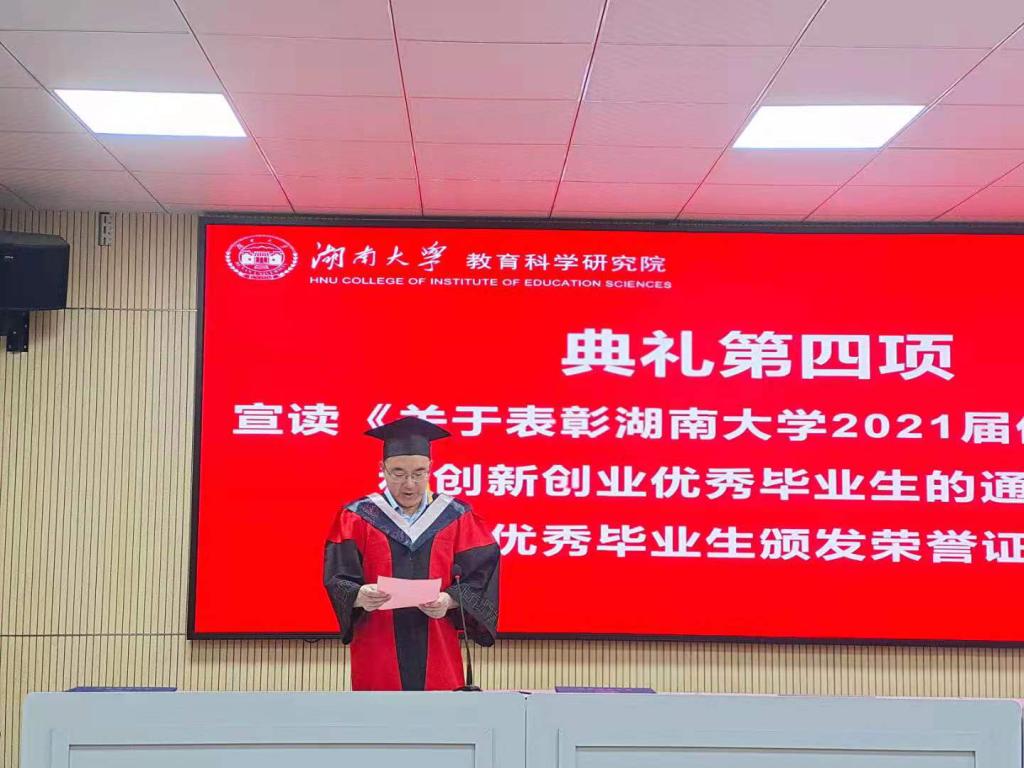 2021届毕业生代表刘文静、韩烨丹、胡松依次发言,怀念湖大教科的青春岁月和求学时光,感恩师长的悉心栽培和热心帮助,感念同窗好友的鼓励支持和陪伴成长,表示一定牢记“实事求是、敢为人先”的校训,立传道济民之志,扬湖大教科之光。