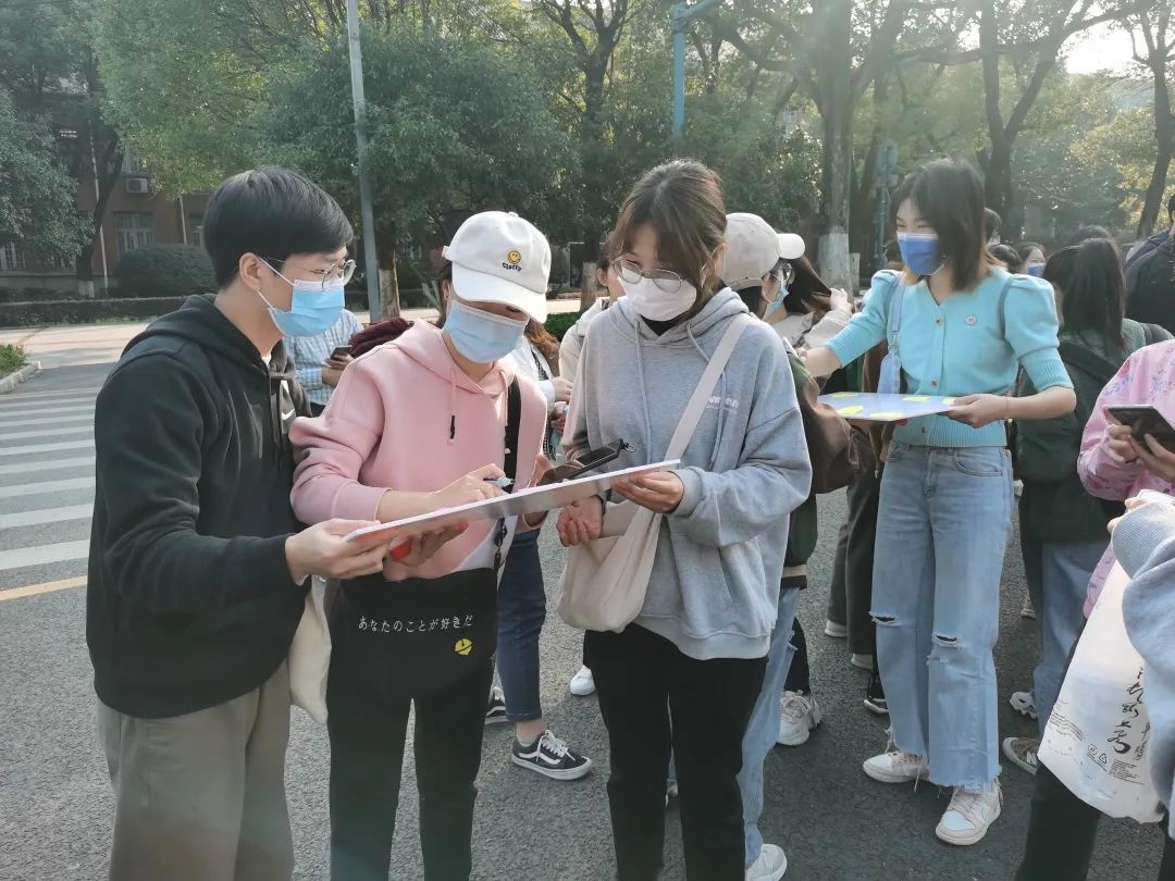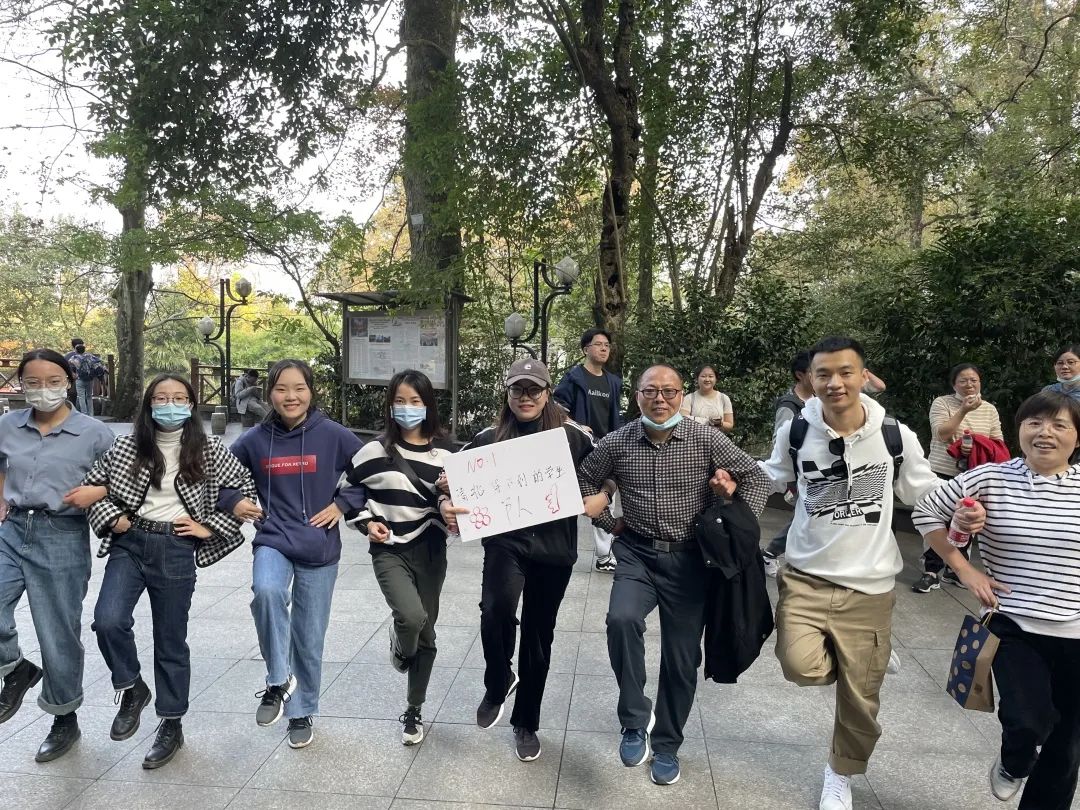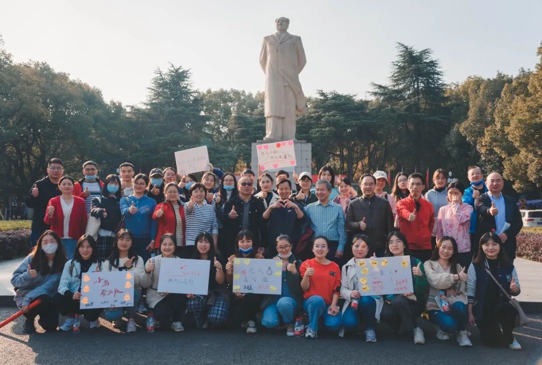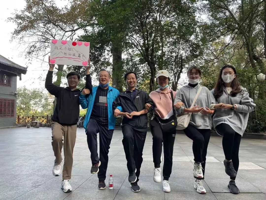 活动伊始,师生于东方红广场抽签分组、制作队牌并合影。合影结束后,各队分别出发,秋阳正好,师生沿着山路,探讨学术,畅聊生活,一路向上。欢笑声此起彼伏,给秋日的岳麓山带来了一片生机与活力。