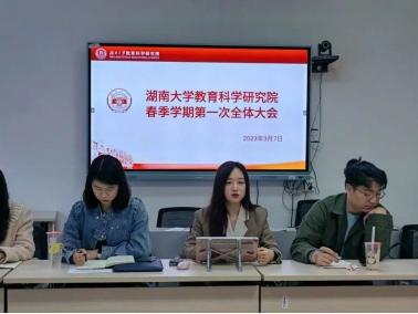 2022—2023学年春季学期伊始,为更强有力落实研究生会新学期的各项工作安排部署,3月7日下午,我院研究生会在北校区银杏楼101教室召开春季学期第一次全体工作例会。本次例会由研究生会执行主席廖婧琳主持,全体研究生会工作人员参与。与会成员就各部门前期工作总结、新学期工作计划、工作心得感悟、研究生骨干制度及精神学习等议程展开深入交流。