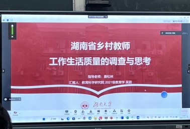 第五组参赛作品是吴蔚同学的《湖南省乡村教师工作生活质量的调查与思考》。通过调查,他指出湖南省乡村教师工作生活质量整体表现达到合格水平,但在具体维度仍上存在一定的差异,并提出了相应的建议与解决措施。