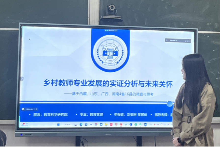 第二组参赛作品是由贺馨仪、刘美琳合作完成的《乡村教师专业发展的实证分析与未来关怀》。她们基于西藏、山东、广西、湖南4省16县的乡村中小学教师的问卷调查与数据分析,提出了旨在提高乡村教师专业发展水平的可落地的、有针对性的对策与建议。