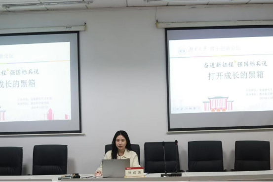 为了帮助同学们在“研”途中找寻方向,获得成长动力,12月4日晚7点,由党委研究生工作部主办,我院研究生会承办的博士创新论坛于银杏楼102报告厅顺利举行。2022级教育学专业研究生徐成源以“打开成长的黑箱”为题与同学们分享交流,由我院研会科创部谢蕙如同学主持。