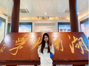 “实事求是,敢为人先”是我湖的校训,也是我的人生信条。在我看来,“实事求是”就是要脚踏实地,心怀赤诚,在实践中淬炼,实学实干,埋头苦干;“敢为人先”就是要承担新时代青年人的责任,要有“为天地立心,为生民立命,为往圣继绝学,为万世开太平”的宏伟志向。翻看自己三年前懵懂稚嫩的照片,这三年的成长,厚植了自己敢拼敢闯最坚实的底气,化为双眼中愈发自信的光芒。星光不问赶路人,岁月不负有心人,如果说教育是点亮星光的事业,那选择从事教育事业的我,征途必将是星辰大海。