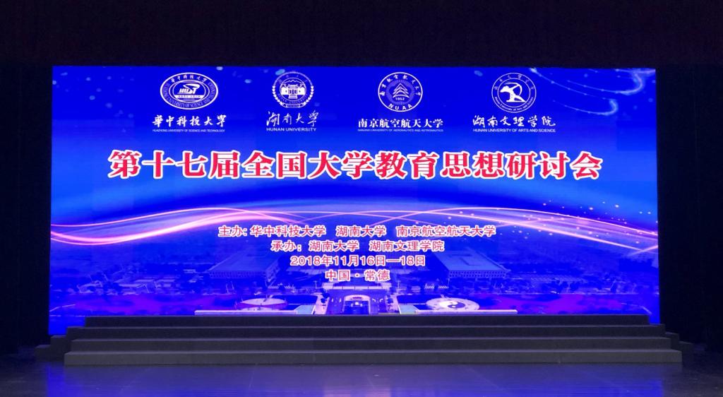 2018年11月17至18日,由华中科技大学、太阳成集团、南京航空航天大学联合主办,太阳成集团、湖南文理学院具体承办的第十七届“全国大学教育思想研讨会”在湖南常德隆重召开。来自北京大学、北京理工大学、厦门大学、武汉大学、郑州大学、吉林大学、中国石油大学、华南师范大学、湖南师范大学、中南民族大学、华中科技大学、太阳成集团、南京航天航空大学、湖南文理学院等60多所高校及科研机构的300余位与会代表,围绕着“新时代的大学教育思想”这一主题,主要从改革开放四十年我国高等教育改革发展的历史回顾;新时代我国高等教育思想体系建设;人类命运共同体构建与中国大学教育的新使命;“双一流”建设与中国高等教育内涵式发展战略;乡村振兴战略与中国大学师范教育的新发展等五个专题展开研讨与交流。