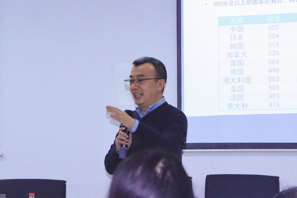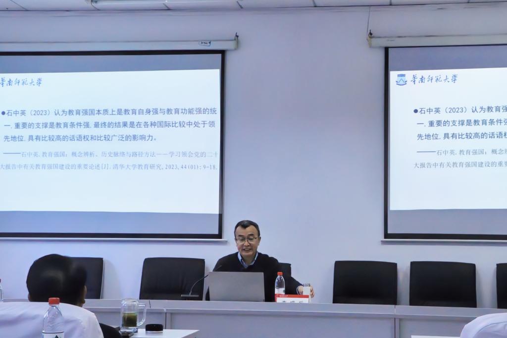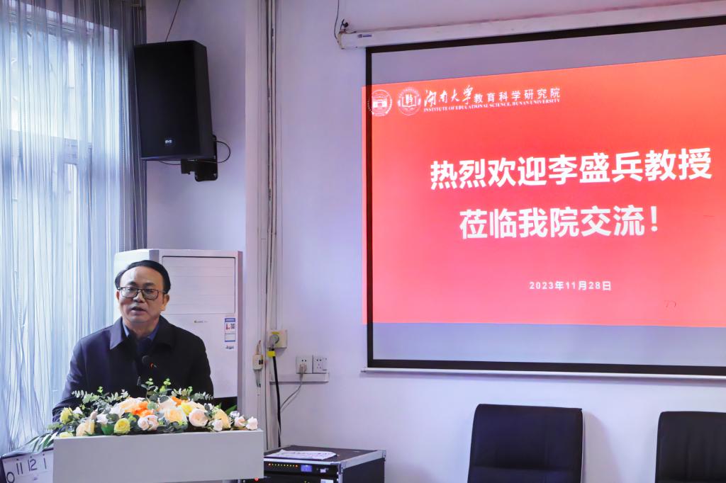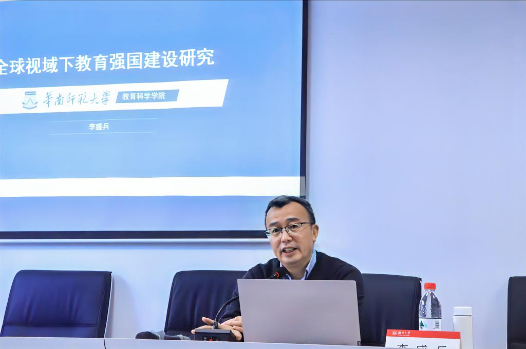 李盛兵教授从教育强国的内涵及关键要素、十国教育实力的比较分析以及全球视域下教育强国建设的思考三个方面展开本次讲座。