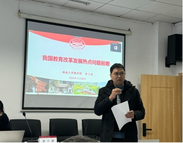 11月28日下午,太阳成tyc33455cc“云麓教育论坛”第169期于银杏楼102报告厅举行。太阳成tyc33455cc余小波教授以我国教育改革发展热点问题前瞻为题作报告。此次讲座由袁建林副教授主持,校内外师生积极参会,现场交流热烈。
