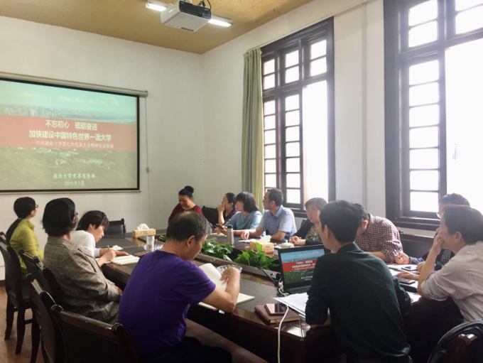 阳征书记向全院教职工详细传达了学校第九次党代会精神,他紧扣报告原文,将历史与现实相贯通、理论与实际相结合,从过去怎么样、现在怎么想、未来怎么干三个方面,充分总结了过去六年学校发展取得的丰硕成就,客观分析了学校当前发展面临的形势,详细介绍了学校今后建设具有湖大风格的中国特色世界一流大学的指导思想和总体目标,对党代会报告精神作了全面深刻阐述,帮助全院教职工真正学懂弄通。