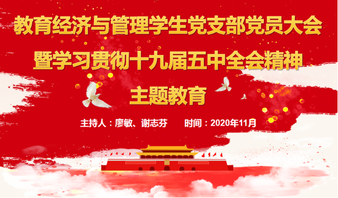 11月21日下午,我院教育经济与管理专业学生党支部于学院320教室开展党员大会暨学习十九届五中全会精神主题教育活动。此次会议由支部书记廖敏主持,全体支部党员和发展对象积极参与。