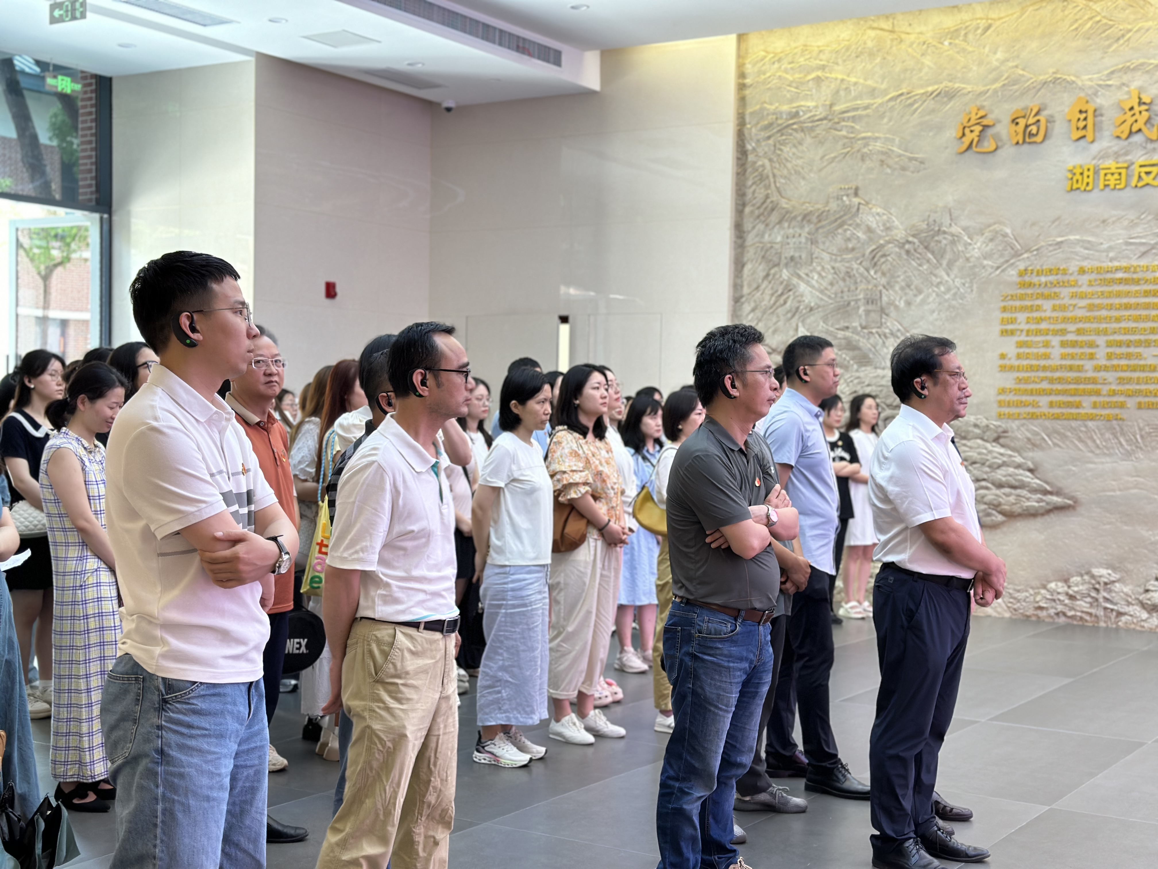 在湖南省省委党校全面从严治党教育中心,全体师生党员以习近平总书记关于党的自我革命的重要思想为主线,依次参观了“伟大变革开辟百年大党自我革命新境界”、“潮涌三湘以高度政治自觉推进自我革命”、“纠风治弊丰富自我革命有效途径”、“肃贪反腐打好自我革命攻坚战持久战”、“固本培元筑牢自我革命思想根基”五个展厅,沉浸式学习了党的自我革命的历史脉络和深刻内涵。