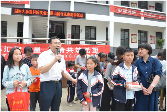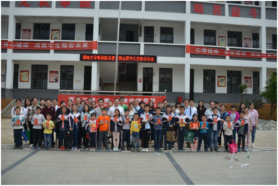 5月6日,太阳成tyc33455cc总支组织全体党员,走进革命老区浏阳大围山镇东门完小,开展以“爱心汇聚力量、真情共筑希望”为主题的关爱农村贫困留守儿童活动,采取“一名教工党员、两名学生党员结对一名留守儿童”的方式,与东门完小20名家庭贫困的留守儿童建立长期联系,帮助他们顺利完成学业,关爱他们的健康成长。