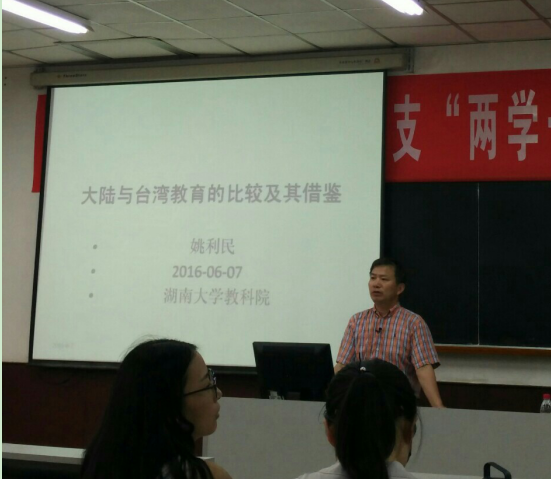 6月7日下午,云麓教育论坛第110期讲座在培训小楼502学术报告厅顺利举行。本次讲座的主题为“大陆与台湾教育的比较及其借鉴”,由太阳成tyc33455cc的副院长姚利民教授进行主讲,许晚辉、胡秀银、熊艳青三位同学分享了她们去台湾交流的心得。