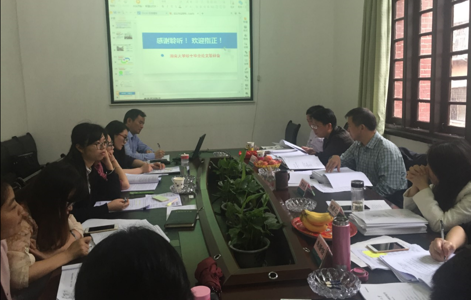 此次参加答辩的学生共有37人。答辩程序分学生陈述、专家提问、学生答辩、专家结果讨论四个部分。答辩过程中学生以展示PPT的形式分别阐述自己论文的选题目的和意义、论文结构、研究视角、研究方法、主要观点、研究中发现的问题、论文的创新之处等。学生陈述完毕后,各专家针对论文内容、结构、格式等方面对答辩同学提出问题。同学们就专家提出的问题做了认真回答。