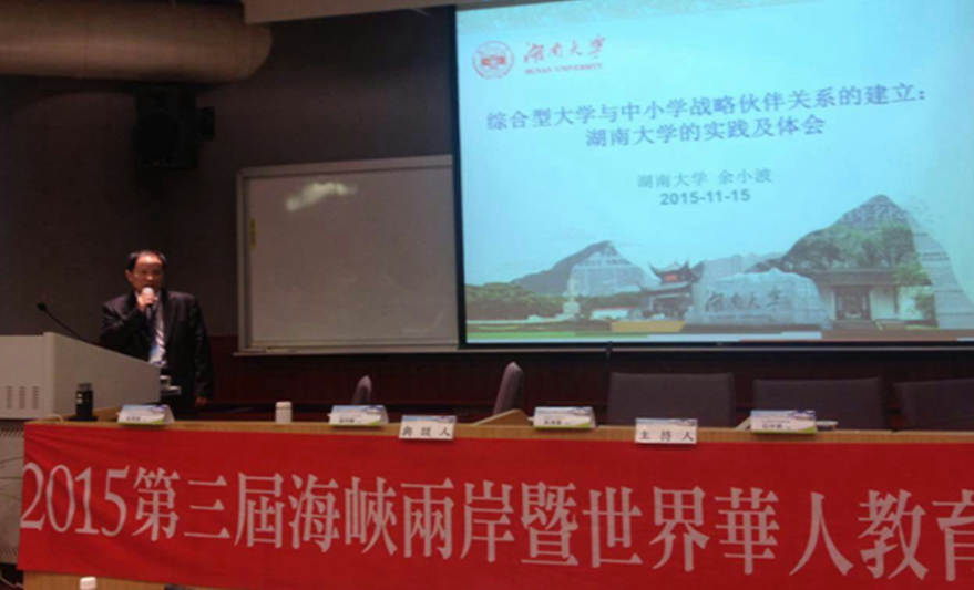 2015年11月14日至17日,应台湾国立暨南国际大学教育学院院长杨振升先生之邀,我院院长余小波教授赴台参加了“第三届海峡两岸暨世界华人教育领导人论坛”。该论坛由两岸大学教育学院的学者们共同发起,一年一次。第一届由台湾政治大学承办,第二届由北京师范大学承办,这次是第三届,由台湾暨南国际大学承办。