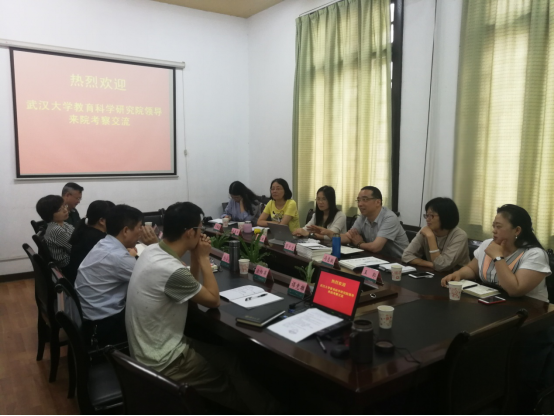 6月13日上午,武汉大学太阳成tyc33455cc院长彭宇文教授一行六人来我校教育科学研究院调研考察,我校太阳成tyc33455cc院长余小波教授、副院长蒋家琼教授、徐丹副教授、《大学教育科学》副主编李震声副研究员、涂阳军副教授在教科院310会议室与客人进行了交流座谈。