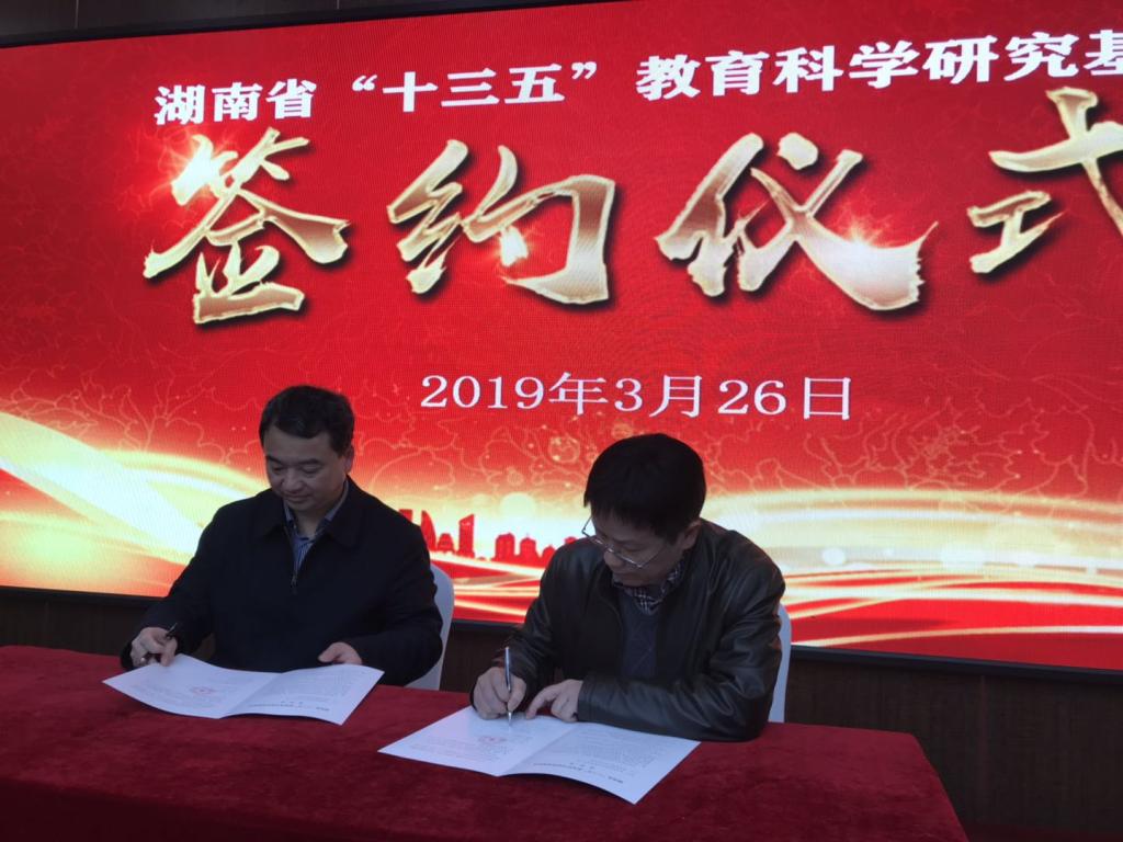 湖南省教育厅党组成员、省委教育工委副书记王建华与教科院余小波院长签约