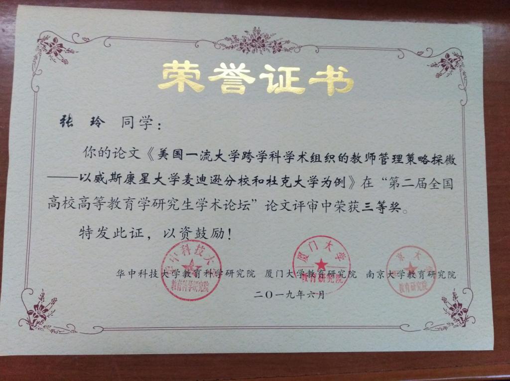 在为期一天半的会议议程中,我院学子认真听取报告,积极地与参会代表们开展了广泛的交流和探讨。15日下午,我院学生—论坛三等奖获得者张玲就自己的参赛作品——《美国一流大学跨学科学术组织的教师管理策略探微——以威斯康星大学麦迪逊分校和杜克大学为例》——以PPT的形式进行报告,PPT内容丰富、观点鲜明,将自己的研究方法和研究成果从不同的角度进行阐述。在报告结束之后,两位评审老师对其报告以及研究成果给予了充分的肯定并指出存在的问题,提出相关建议。这对于下一步的学术研究有着十分重要的意义。与此同时,我院学生在台下认真的聆听报告,收获满满。