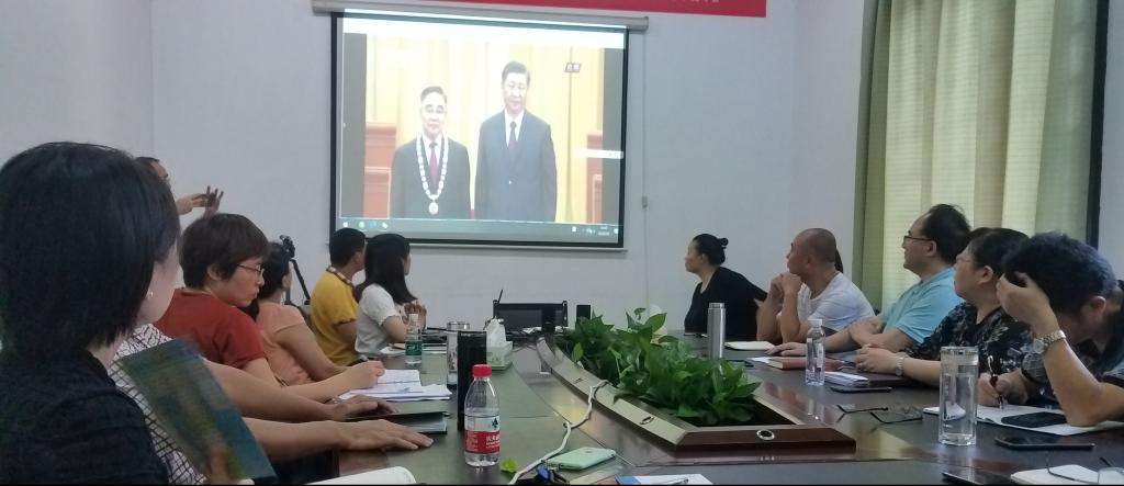会上,全体教职工集中观看了全国抗击新冠肺炎疫情表彰大会视频,向抗疫英雄致敬。