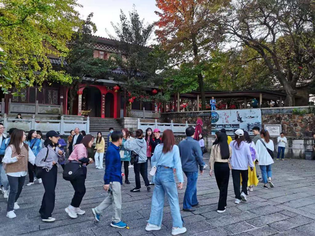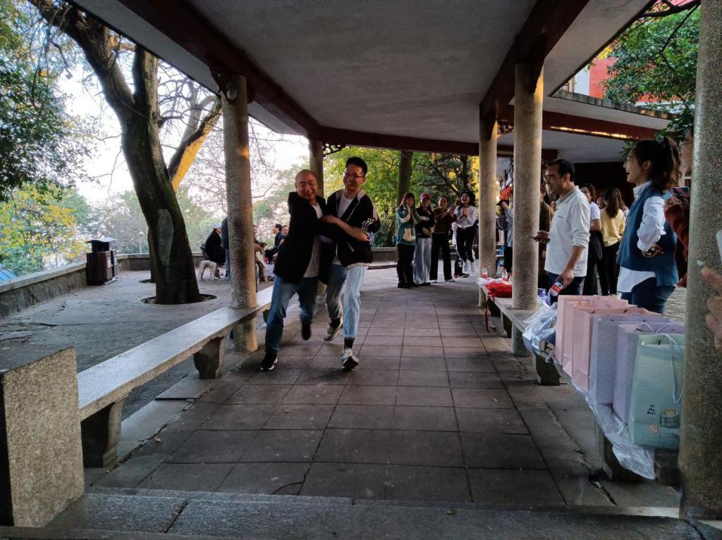 在云麓宫,师生积极参与夹气球和“一块五”的趣味游戏,现场气氛十分热烈,师生脸上洋溢着灿烂笑容,欢笑声在山间传开。