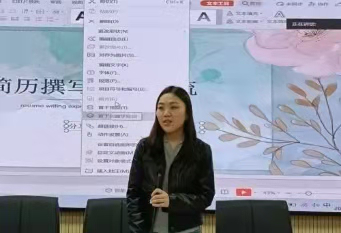 2018级在校生刘俊雅和童雨溪为大家分享了简历制作的相关经验。她们指出简历格式应简约大气、逻辑清晰,简历内容要详略得当、重点突出,实习实践经历应与求职岗位相匹配,学会用数据支撑相关事实等。