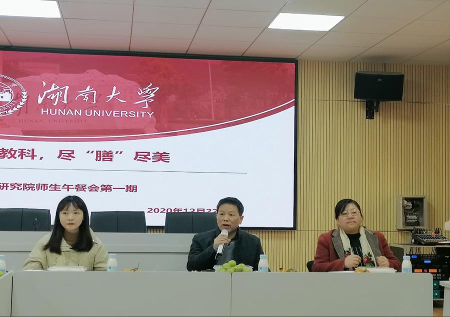 12月22日,我院第一次师生午餐会于培训小楼502举办,此次师生午餐会以“湘”约教科,尽“膳”尽美为主题,旨在丰富师生交流形式,搭建沟通对话平台,促进教师进一步走近学生、倾听学生,为学生解疑答惑、助力未来发展。余小波院长、蒋家琼副院长、辅导员柏静老师,以及21名同学参与了此次午餐会。