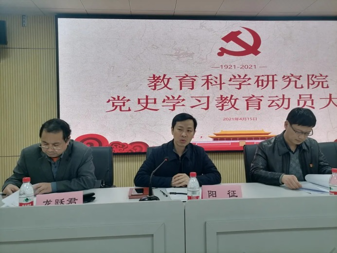 会议由院长余小波主持,党总支书记阳征做党史学习教育动员讲话,组织员龙跃君介绍党史学习教育实施方案。