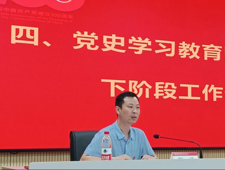 阳征书记总结回顾了前一阶段我院党史学习教育取得的成果,为下一阶段工作开展进行了部署,并呼吁大家要努力把服务师生工作做实做细,推动党史学习教育见真章出实效,用实际行动迎接建党100周年!