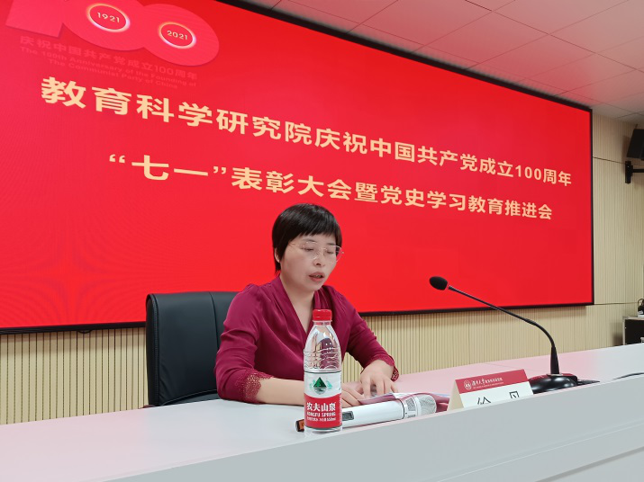 表彰大会由副院长徐丹主持。徐丹副院长宣读了《关于表彰先进党支部、优秀共产党员、优秀党务工作者、“党史学习教育”学习积极分子的决定》。