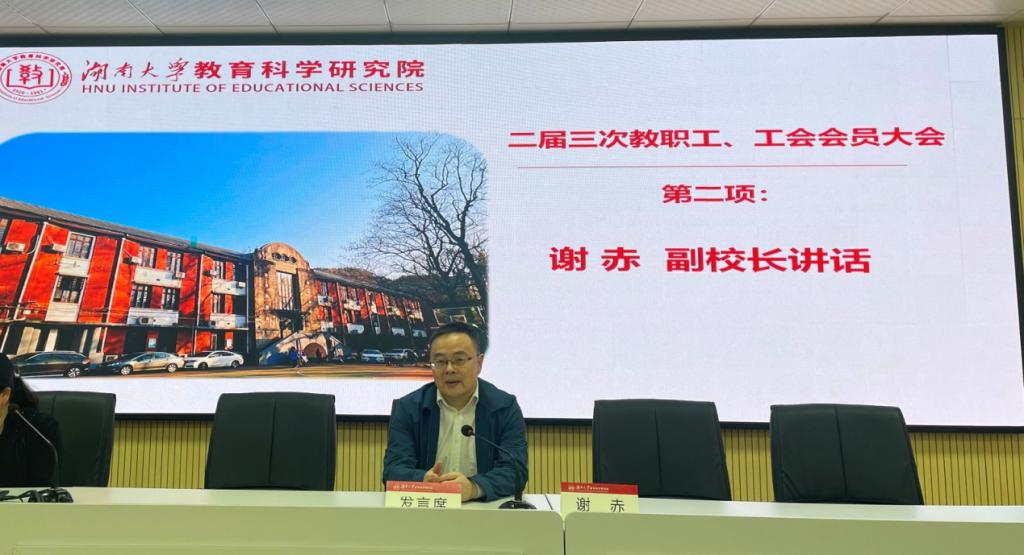 谢赤副校长全面总结了学院在人才培养、学科建设、科学研究、内部管理等方面的工作。他指出,在国家深化教育评价改革、学校全面推进“十四五”和新一轮“双一流”建设的形势下,学院要不断提升研究生培养质量,不断凝练教育学科特色,加大人才引进力度,扩大师资队伍力量,充分利用太阳成集团平台优势建设好教育学科。他希望,学院工会积极开展工作,不断提升管理服务水平,创造良好工作环境,团结全体师生员工,为推进学院改革与发展事业、助力学校“双一流”建设作出更大贡献!