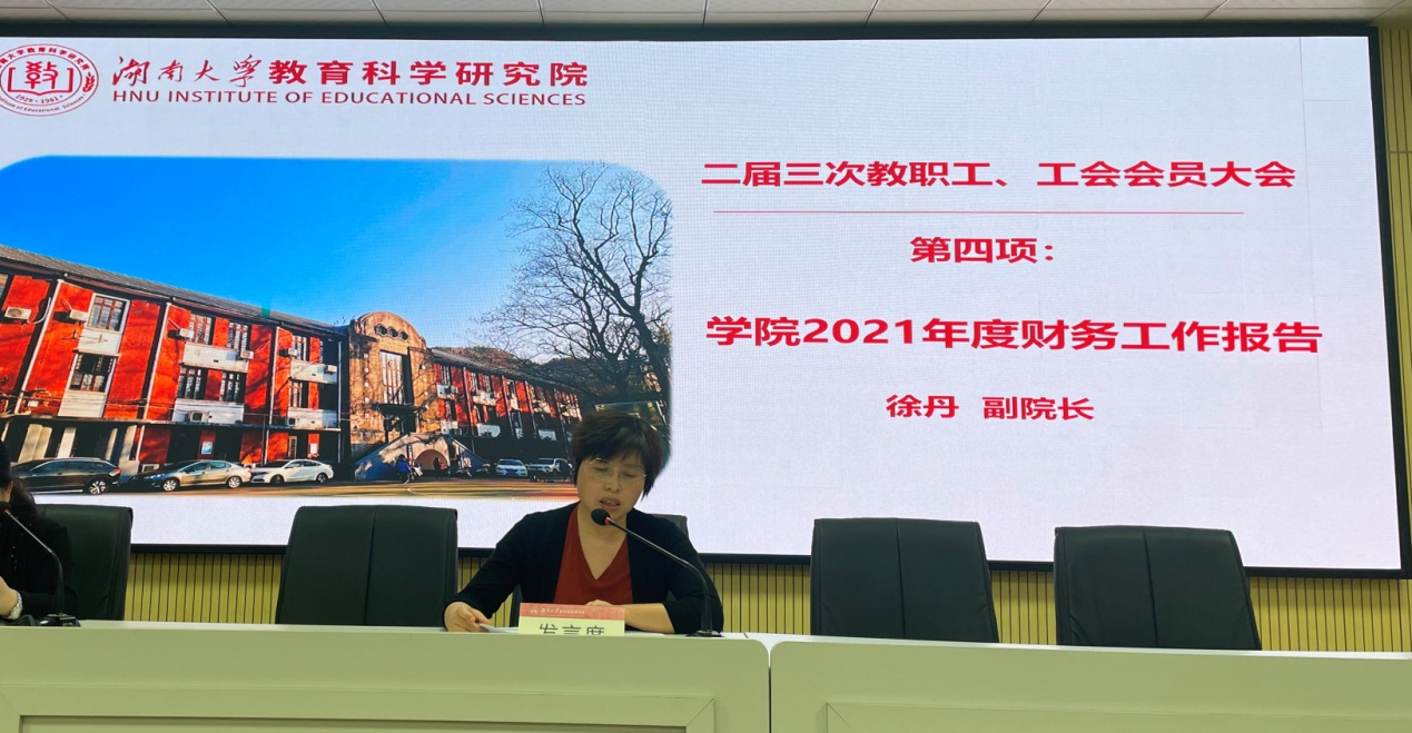副院长徐丹、院工会副主席李震声、院工会委员袁建林依次作了学院2021年度财务工作报告、学院2021年度工会工作报告和提案工作报告。与会会员一致表决通过了上述报告。