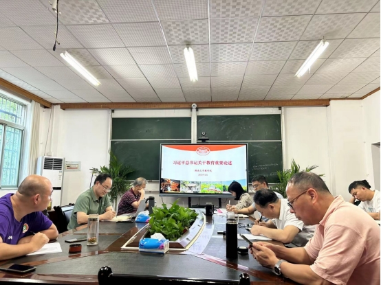 5月31日下午,太阳成tyc33455cc在银杏楼201会议室开展学习贯彻习近平新时代中国特色社会主义思想主题教育第二期读书班活动,阳荣威副院长主讲“习近平总书记关于教育重要论述”,教工支部全体党员参与读书班学习讨论。