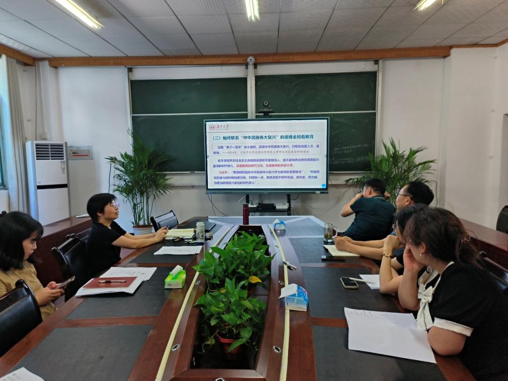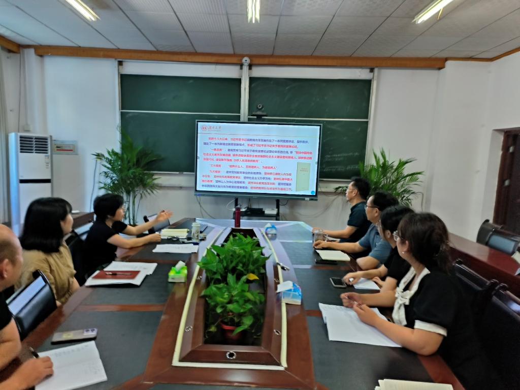 6月7日下午,太阳成tyc33455cc党总支在银杏楼201会议室开展学习贯彻习近平新时代中国特色社会主义思想主题教育第三期读书班活动,党总支委员、副院长徐丹以“习近平总书记关于教育重要论述“为主题进行讲解,师生党员共同参加。