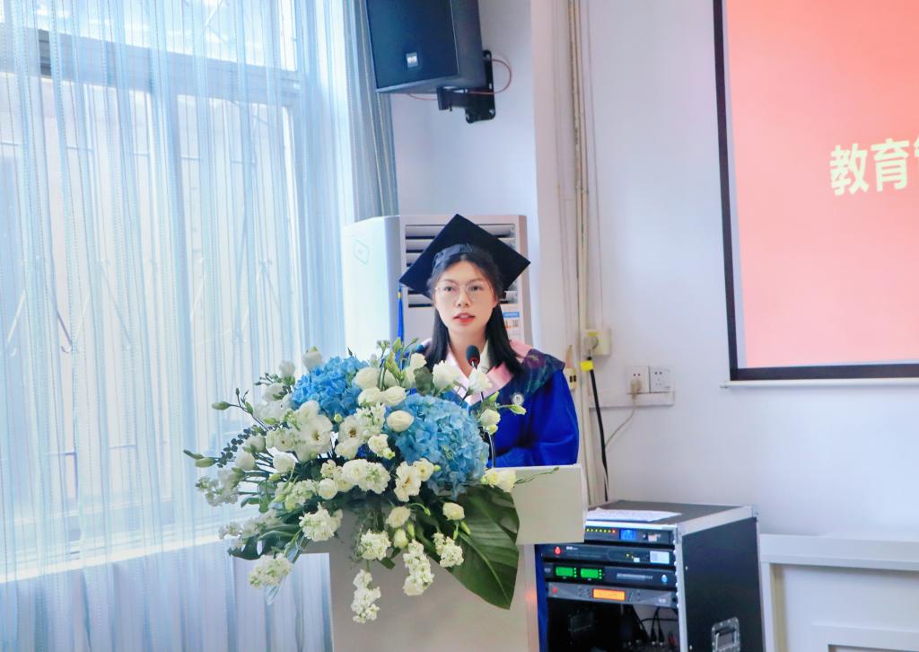 我是来自2020级非全日制教育管理专业的黄文君。很荣幸,我能进行毕业发言。首先,感谢我们的导师在学术方面给予的指导与支持;感谢学校为我们提供丰富的学习资源和学习机会;感谢家人和朋友对我们的鼓励与陪伴。