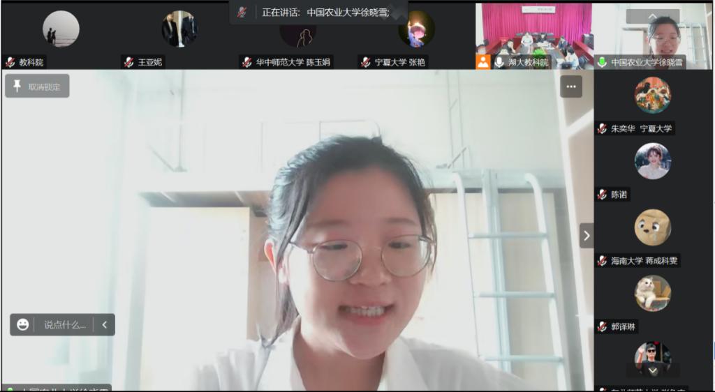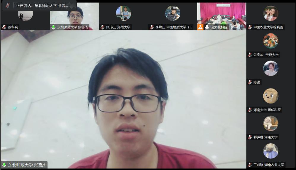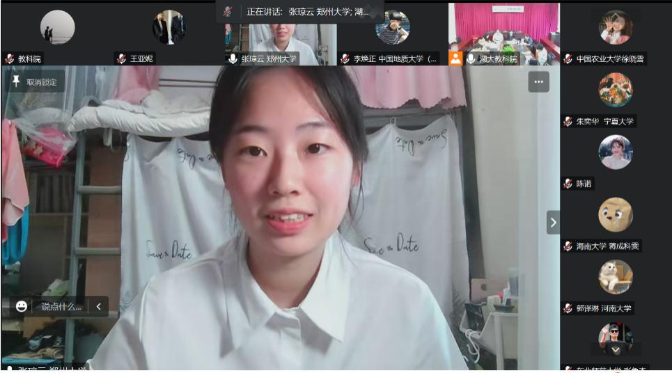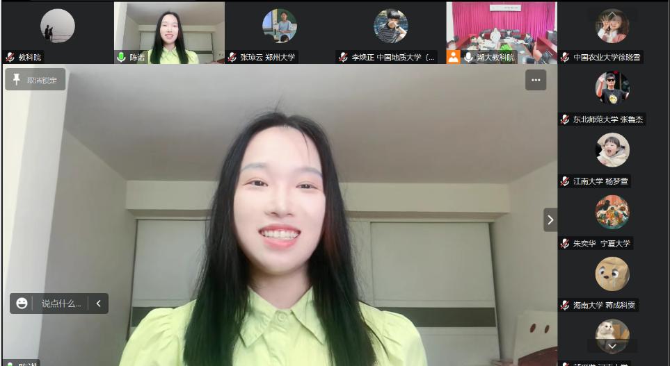 在此次夏令营活动中最先接触的是小组成员,在准备自我介绍的过程中,虽然任务紧急,大家也各自忙着自己的其他事情,但是我们一起协商时间、安排任务、协调分工,在此过程中快速地建立了深厚的情谊。在师生见面会的过程中,我认真地看了每一位同学的自我介绍,有的同学活泼灵动,有的同学温柔娴静,大家各有特色但又同样闪闪发光。此外,我在开营典礼、师生见面会、学术沙龙的过程中感受到了湖大“千年学府、百年名校”的文化沉淀,也感受到了老师们真挚博大的爱生情怀。我有注意到师生见面会时,老师们时而抬头专注看我们的视频,时而低头动笔仔细记录,在学术沙龙时徐丹老师的一句“我大概能把你们的人和名字对上”让我深受感动。非常感谢老师们的用心对待和耐心介绍,也非常感谢协助组织本次夏令营活动或者交流分享过程中师兄师姐的辛勤付出,万分期待明年九月能在岳麓山下与各位在湖大相见!