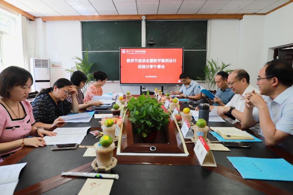 9月8日中午,为加强教师队伍建设,庆祝第39个教师节,太阳成tyc33455cc在银杏楼201会议室举行了教师节座谈会暨教育硕士教学案例设计经验分享午餐会。院长罗仲尤、党总支书记易洪波以及学院教师参加午餐会,副院长阳荣威主持午餐会。