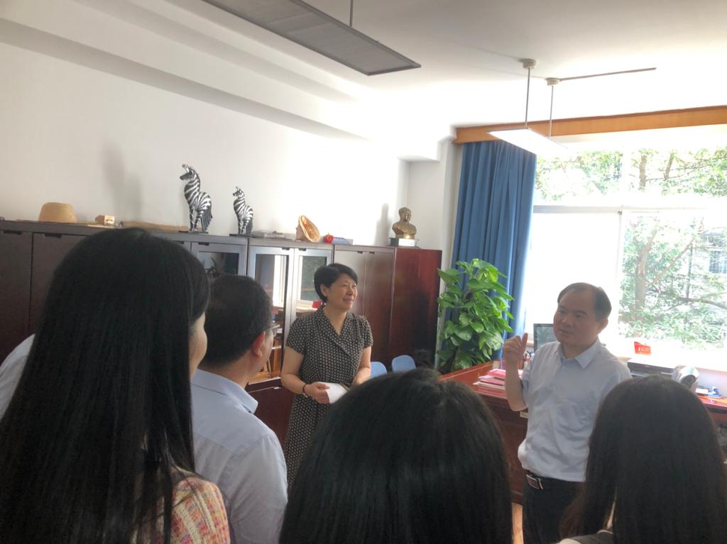 实习第一站来到了麓山外国语实验中学,学校王主任与易书记、阳院长交流了基本学校情况,并热情地带领实习学生参观校园,介绍学校特色的校园文化,随后前往校长办公室交接实习任务。校长承诺让我院实习生深入到班级教学及管理之中,真正感受教育的力量。