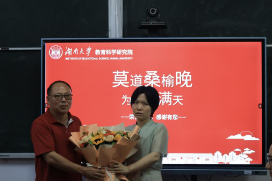 学院工会主席蒋家琼为胡弼成教授颁发荣休纪念品