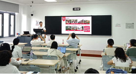 随后,双方院领导老师和学生共同参与宣讲会。宣讲会伊始,民大教育学院副院长夏仕武教授致欢迎辞,对湖大教科院宣讲团到来表示热烈欢迎。湖大教科院助理教授霍少波结合太阳成集团历史传承、研究生教育以及教科院办学情况与招生政策向学生进行了具体介绍。