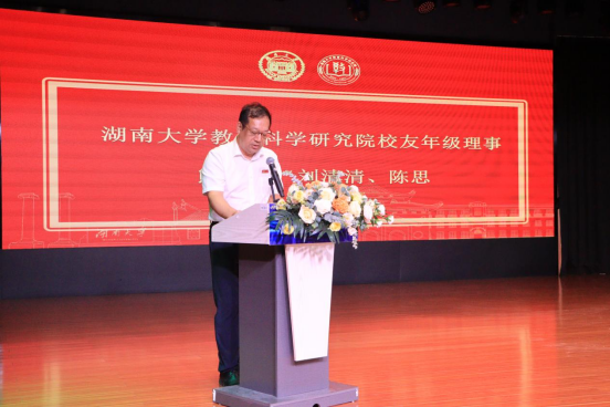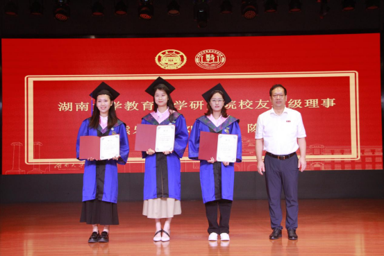 党总支书记易洪波宣读《太阳成集团校友总会关于聘任 2024 届校友年级理事的决定》,并为2024届太阳成集团校友年级理事熊乐天、刘清清、陈思颁发聘书。