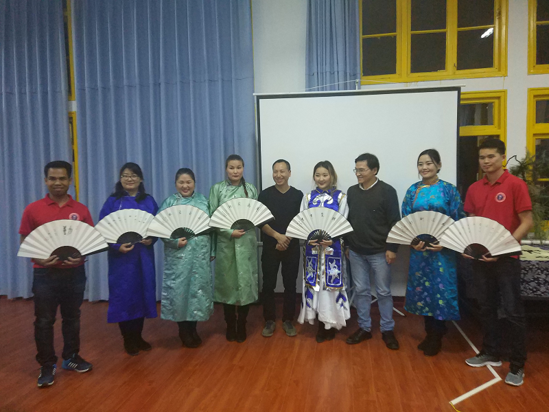 在11月6日举行的文化交流晚会上,湖南文理学院师范学院张奋书记致欢迎辞,对于我院师生的到来表示热烈的欢迎。我院蒋家琼副院长表达了对湖南文理学院的感谢。我院留学生与湖南文理学院师范学院的师生共同奉上了一场精彩纷呈的文艺演出。我院留学生充满异域风情的老挝歌曲演唱和热情豪放的蒙古国舞蹈赢得了阵阵掌声;湖南文理学院师范学院师生通过戏曲、古典器乐、书法等展示了博大精深的中华文化,中国五大戏曲剧种之一黄梅戏的经典唱段《天仙配》、传统与现代结合的二胡表演、湖南文理学院师范学院汤光汉老师现场书写展示了源远流长的书法艺术并赠送给我院每位留学生一幅书法作品。湖南文理学院师范学院唐松林院长对于此次文化交流表示了高度的赞扬及肯定,并对以后能有更多交流的机会表示了期待。