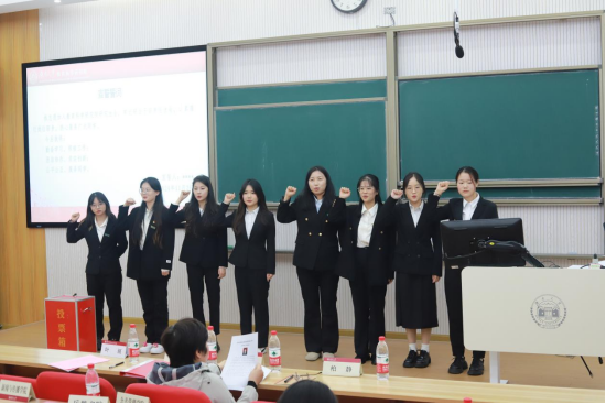 全体研究生正式代表通过不记名投票,经计票人、监票人统计投票结果,产生第二十二届研究生会主席团成员:于雅姿、冯小妮、黄越。经主席团讨论,任命郑莹、李佳仪、李春治、王黎霞、年少杰为第二十二届研究生会调研部、新媒体中心、科研创新部、发展服务部、活动部部长,当选骨干上台郑重宣誓。