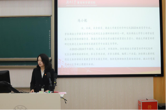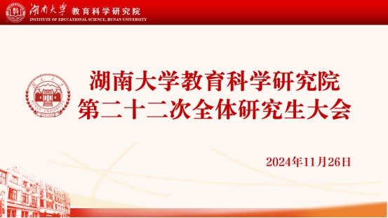 11月26日下午,我院第二十二次全体研究生大会在北校区二教楼101教室顺利举行。党总支书记易洪波、副院长徐丹、学院辅导员叶丽、法学院、材料科学与工程学院、新闻与传播学院、岳麓书院、公共管理学院、外国语学院、金融与统计学院研会代表及全体研究生正式代表参会。大会分为预备会议、正式会议、选举会议三个阶段,由2023级教育学专业硕士研究生冯小妮主持。