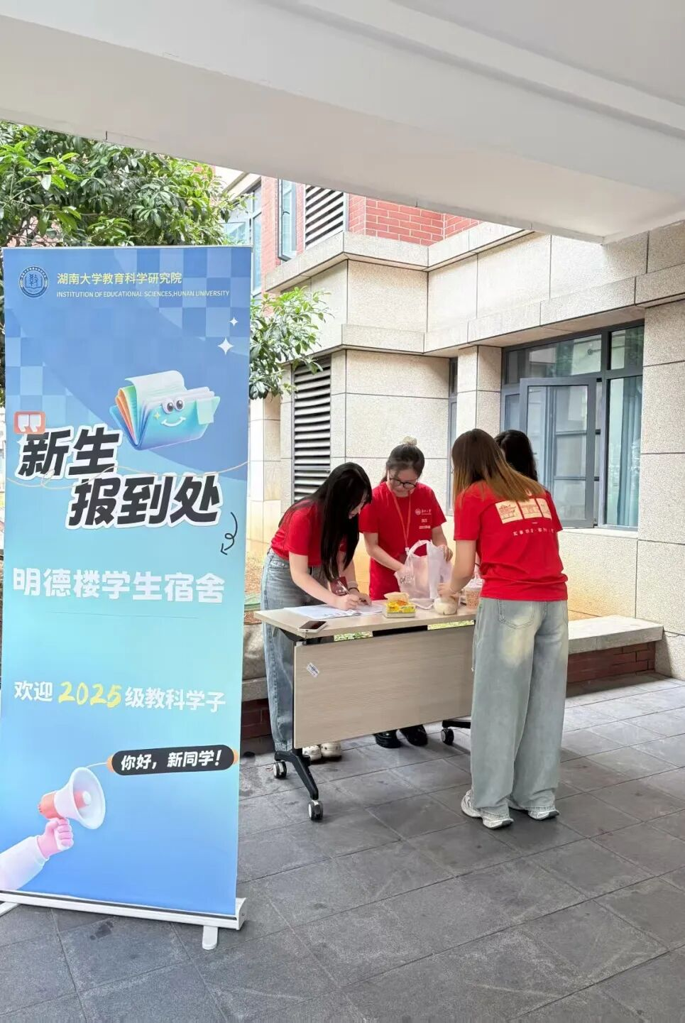在教科院迎新点,志愿者们身着教科红,成为北校里一道亮丽的风景。他们早早到位,耐心解答报到相关事宜,主动帮助新生搬运行李,用真诚的服务传递教科院的第一份温暖。